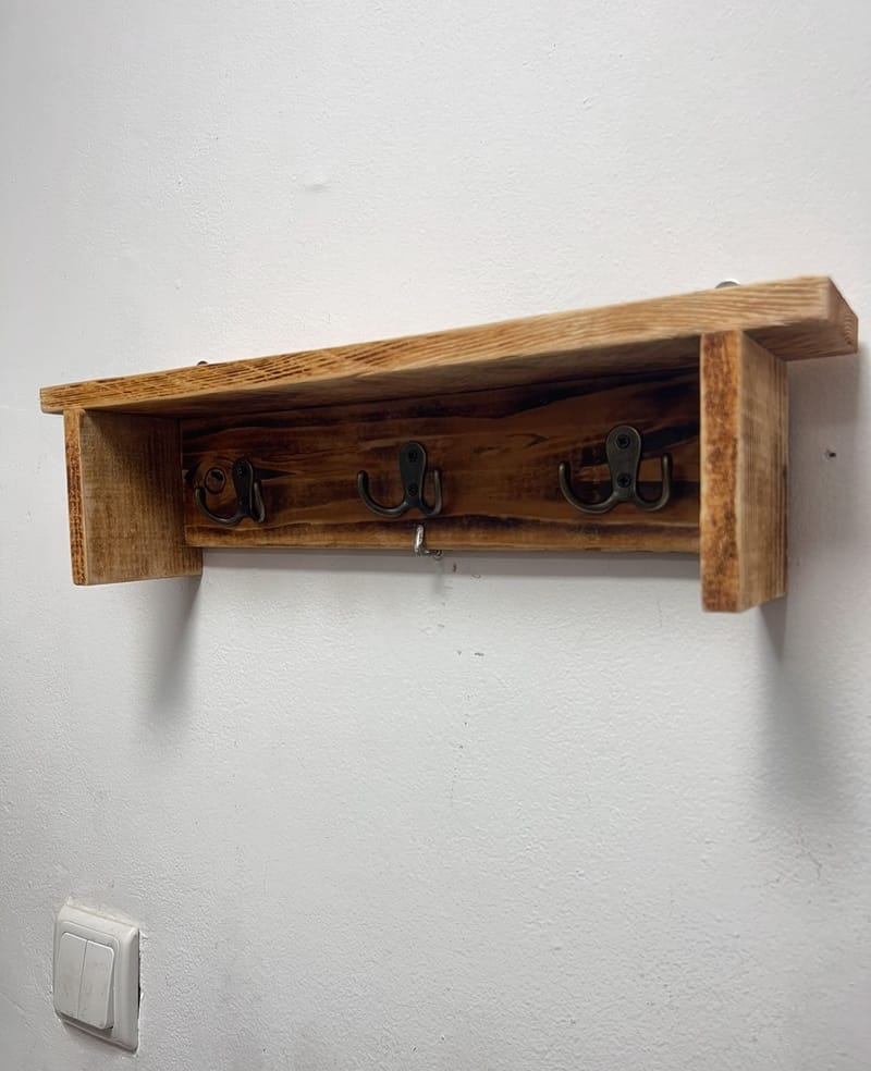 מתלה בגדים / חפצי נוי עם 3 ווים לתליה של 6 בגדים או אקססוריז כמו מפתחות או תכשיטים ועוד, בעבודת יד עם ווים מוכנים לתליה על הקיר. מידות: רוחב - 43 ס״מ גובה - 12 ס״מ עומק - 10 ס״מ 🎽מחיר - 150 ש״ח בלבד 🦺 איסוף מחיפה 📍 0547496591 חזי - עבודות יד מעץ 🪵